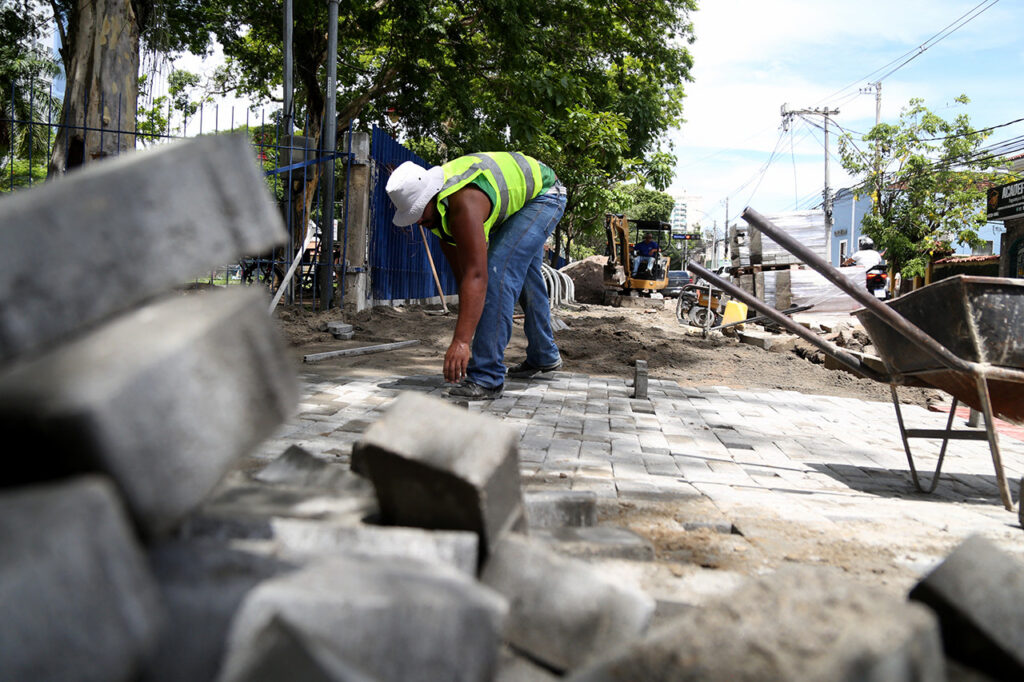 Atualmente, os blocos de piso intertravado estão sendo colocados no trecho da Rua Saldanha Marinho