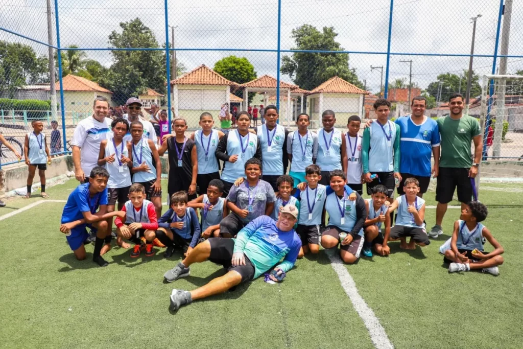 O encontro reuniu as escolinhas de futebol society dos polos de Santa Catarina e Barra do Furado, proporcionando uma manhã de intercâmbio, prática esportiva e confraternização entre os jovens atletas